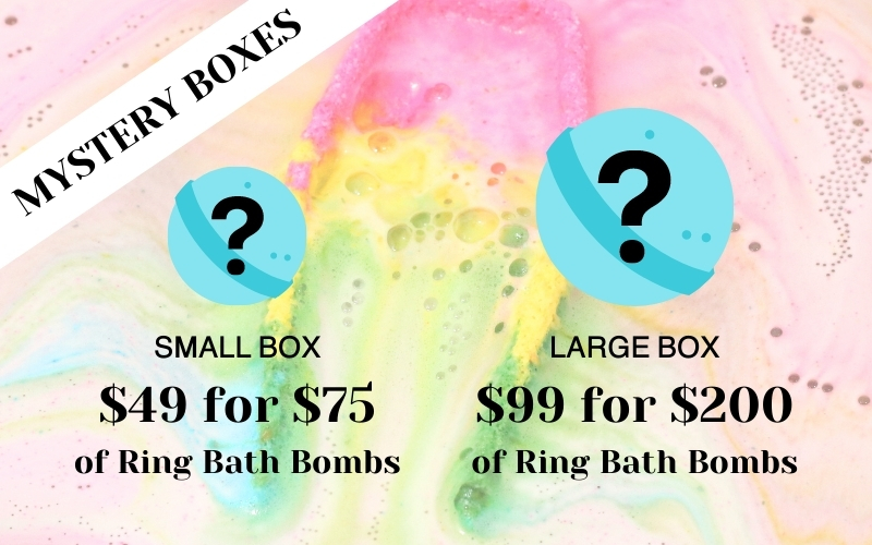 There are two types of Mystery Boxes in this sale: Small or Big. For the Small Box you pay $49 for $75 worth of Ring Bath Bombs and for the Big Box you pay $99 for $200 worth of Ring Bath Bombs. Just choose your box and ring size and let our team of bath enthusiasts surprise you with fizzy treats. It's that simple!